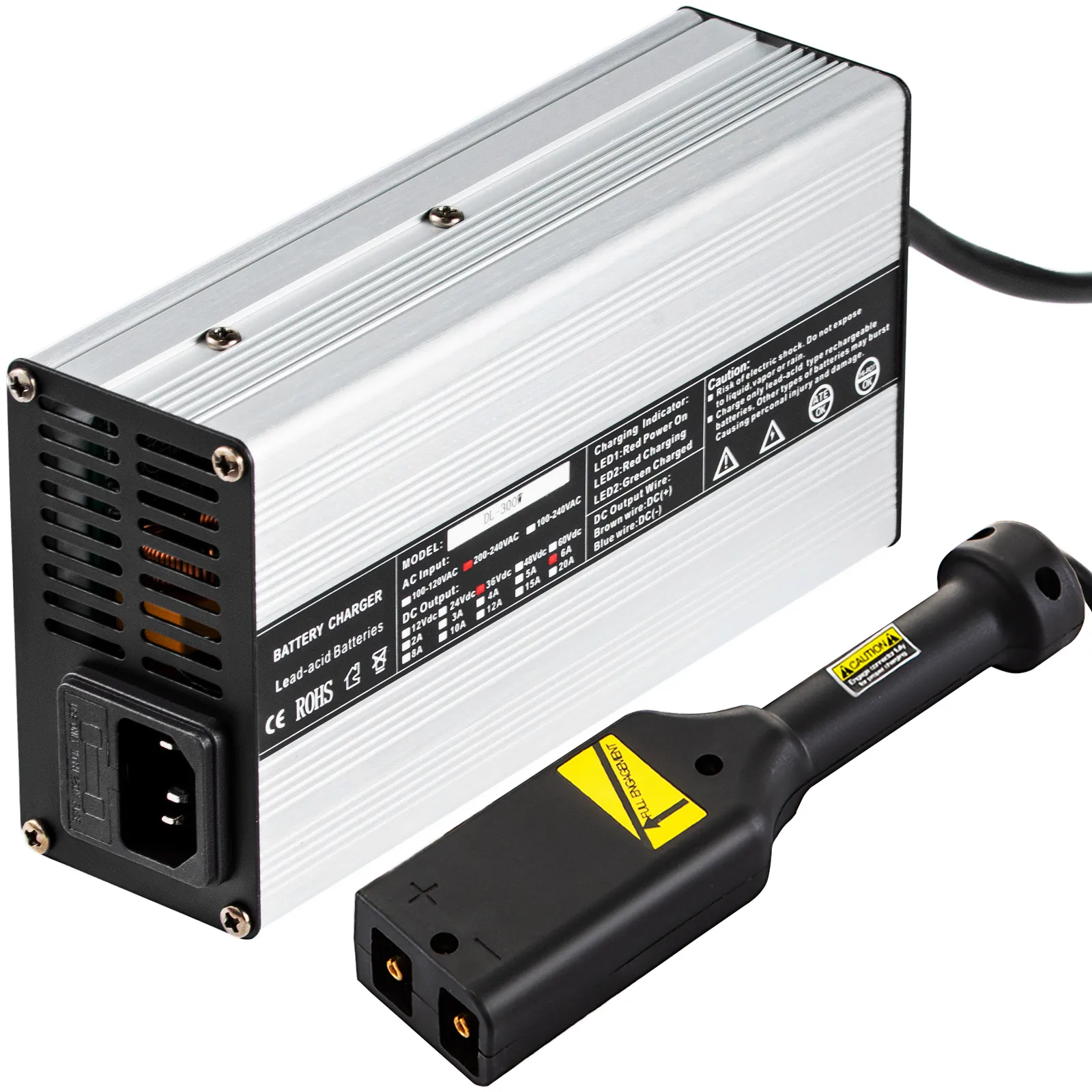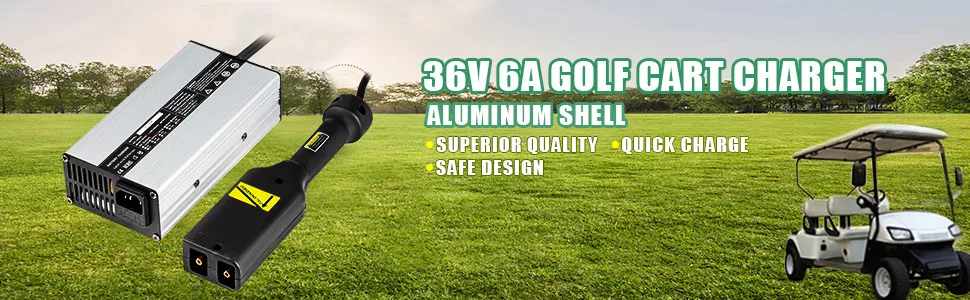 This golf cart battery charger features a compact body yet high efficiency(>85%), charging faster than conventional charges, aluminum shell to protect it from abrasion, quite ideal for golf cart, e-scooters, e-bikes, etc.
