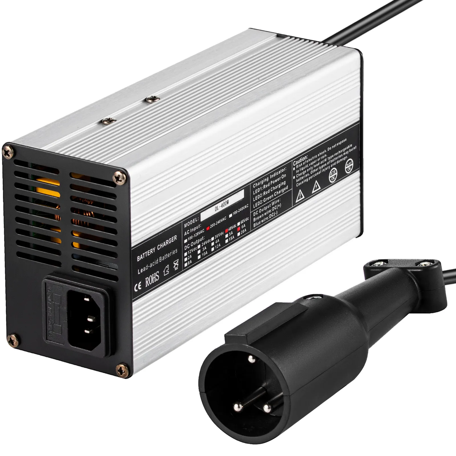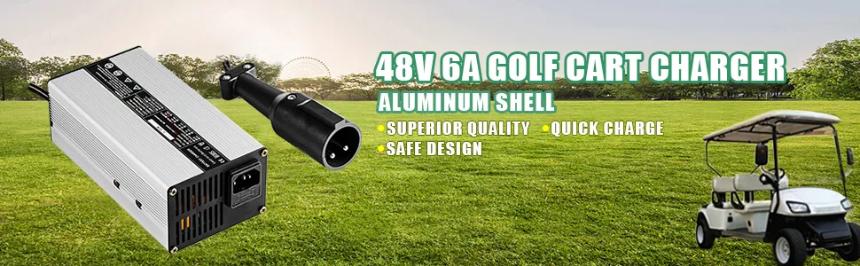 This golf cart battery charger features a compact body yet high efficiency(>85%), charging faster than conventional charges, aluminum shell to protect it from abrasion, quite ideal for golf cart, e-scooters, e-bikes, etc.