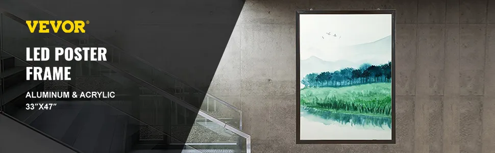 The led illuminated poster frame is made of light-weight and high-strength aluminum alloy frame and acrylic panel with excellent toughness, sturdy and durable. With the side-guide lighting design and 24 lumens LED light source, the movie poster display has high brightness. It is easy to install and can be fixed by two wall-mounted methods. The lighted poster frame is widely used in cinemas, shopping malls, restaurants, and other commercial areas.