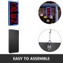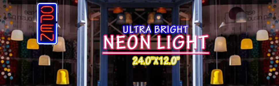An Open neon sign is key to providing visibility and increased traffic to your storefront. This is a super bright 24x12 inch LED neon OPEN sign. This sign is very, very visible in the day time as well as at night, bright color LED lets customers know you are open. It is mounted on a strong frame and suitable for wall or window hanging. Features a long 24 inch chain and 30 watt output, power adapter included. Perfect for retail and service businesses, restaurants, bars, shops, windows, walls and much more.