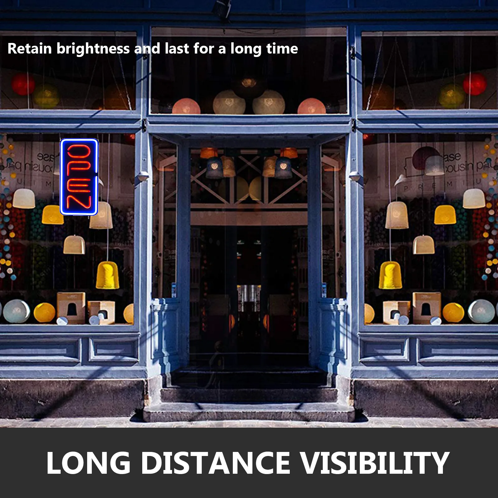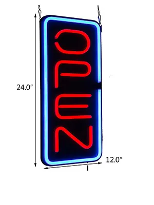 This vertical 24x12 inch LED neon OPEN sign is designed with a bright rectangular red and blue "Open" sign