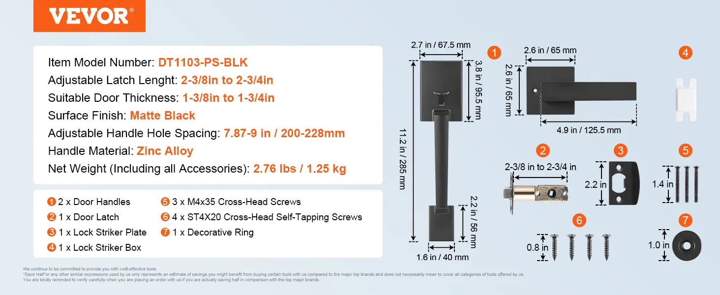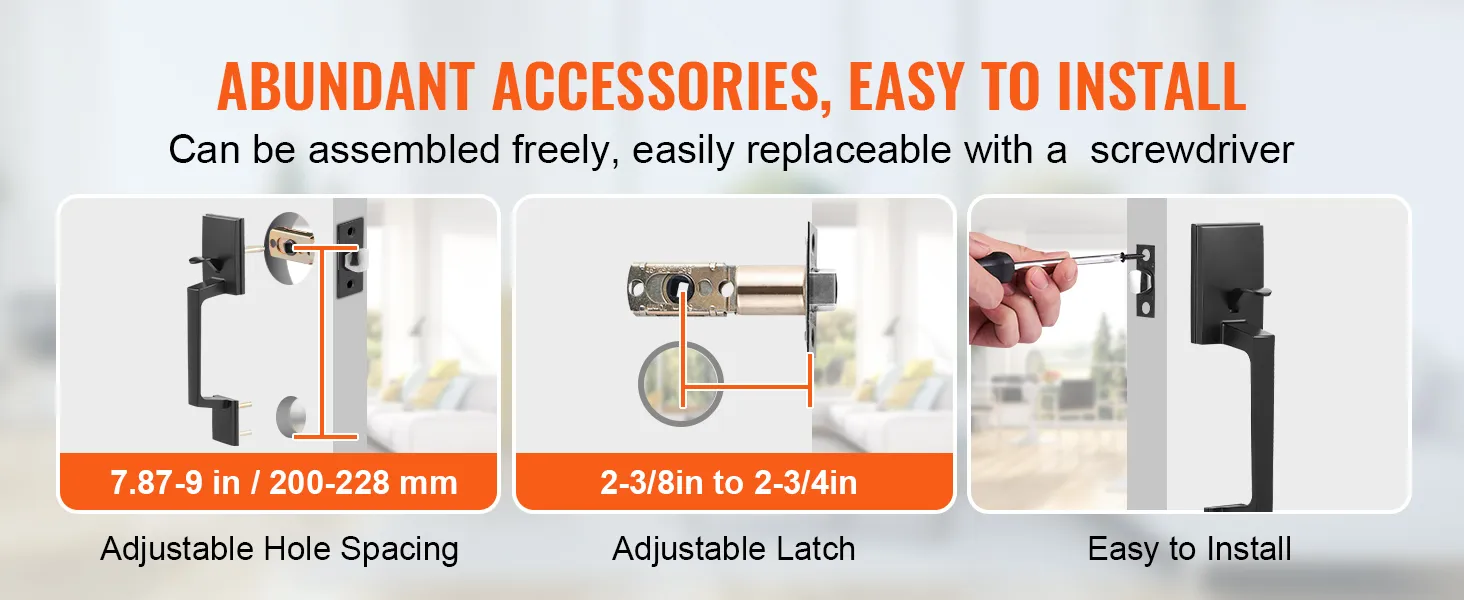 Easy to Install: Our exterior door handle is easy to replace with just one screw. The adjustable design with variable hole spacing and latch positions (2-3/8 to 2-3/4 in) makes it easy to install. Plus, it comes with escutcheons for a stylish upgrade