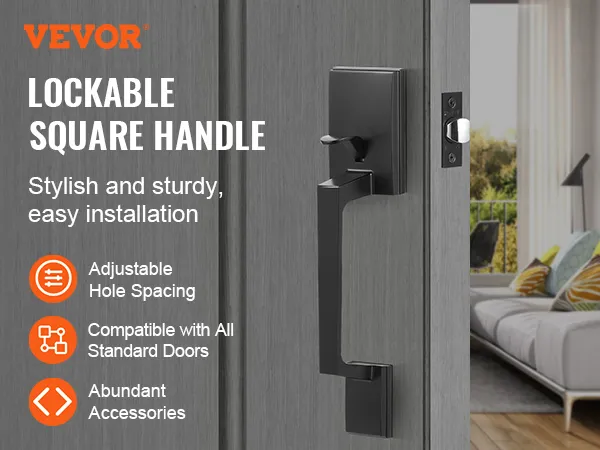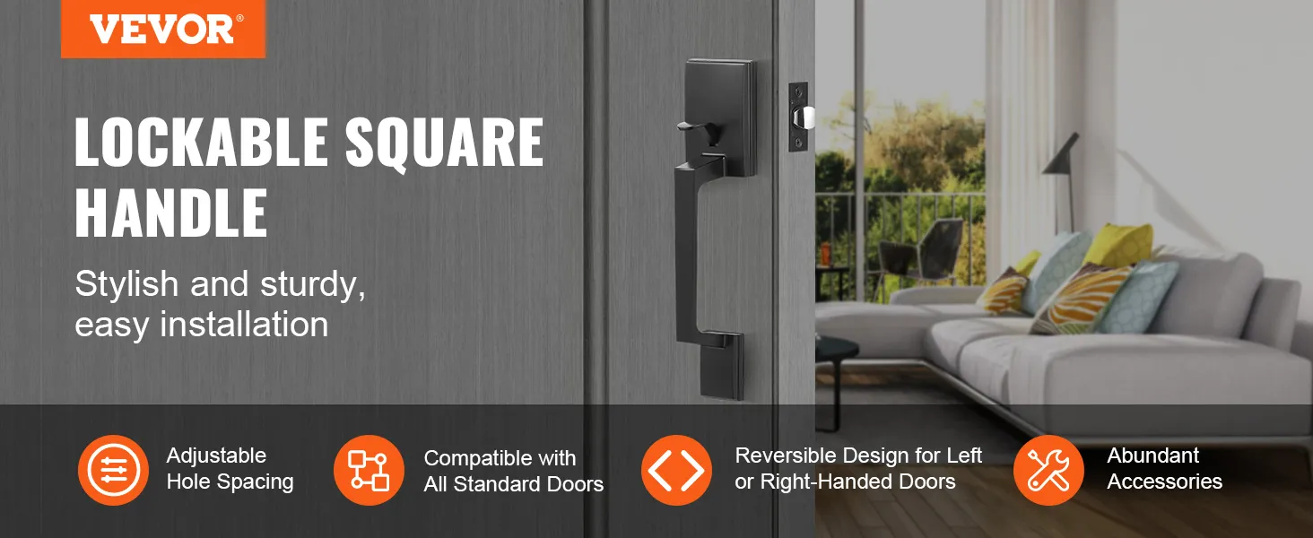 Adjustable Hole Spacing: The external handle's hole spacing is adjustable. Easily install without redrilling—use existing holes for quick replacement. This entry door handle suits front, rear, or office doors, blending function with elegant design