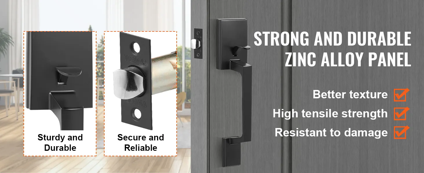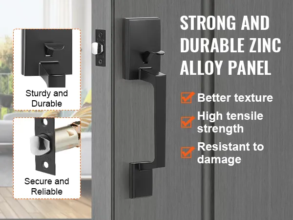 Built Tough for Longevity: Upgraded from stainless steel to zinc alloy die-casting, the panel and handle provide superior texture and strength. Rust-resistant with reinforced thumb turn and grooved lever, this front door handle is built to last