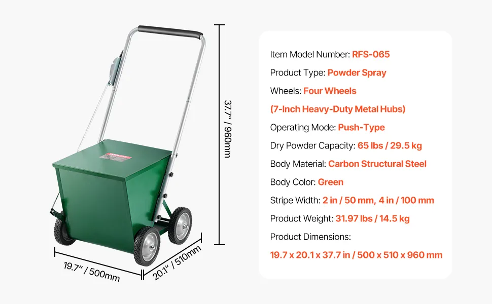 This dry line marker can hold up to 65 lbs of dry powder, making it ideal for various project needs. It ensures clear and precise lines, is easy to operate, and provides an excellent user experience. A top choice for sports field marking machines.