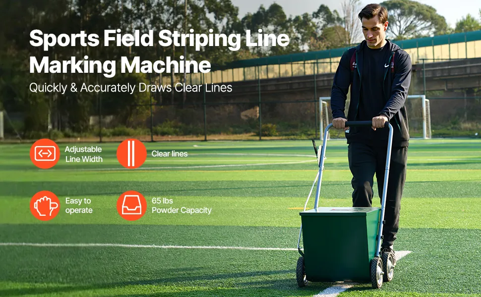Versatile Application: Ideal for various sports fields such as soccer, baseball, softball, and tennis courts, this heavy duty steel chalker quickly and accurately draws clear lines, ensuring standardized and professional fields for training and competition. It's a great tool for sports venue managers and event organizers