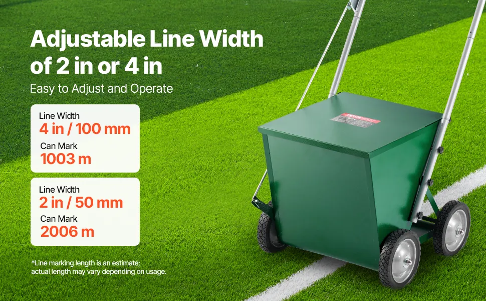 With an adjustable handle, this field chalker allows you to effortlessly set the line width to 2 inches or 4 inches, providing flexibility to meet the specific needs of different surfaces and projects.