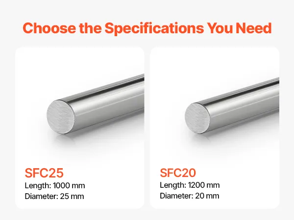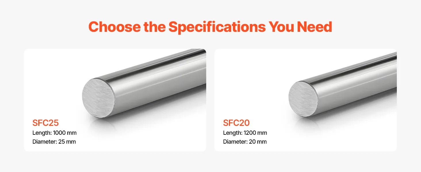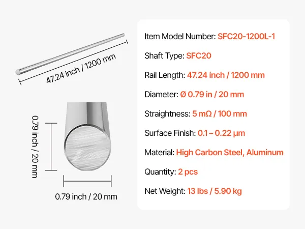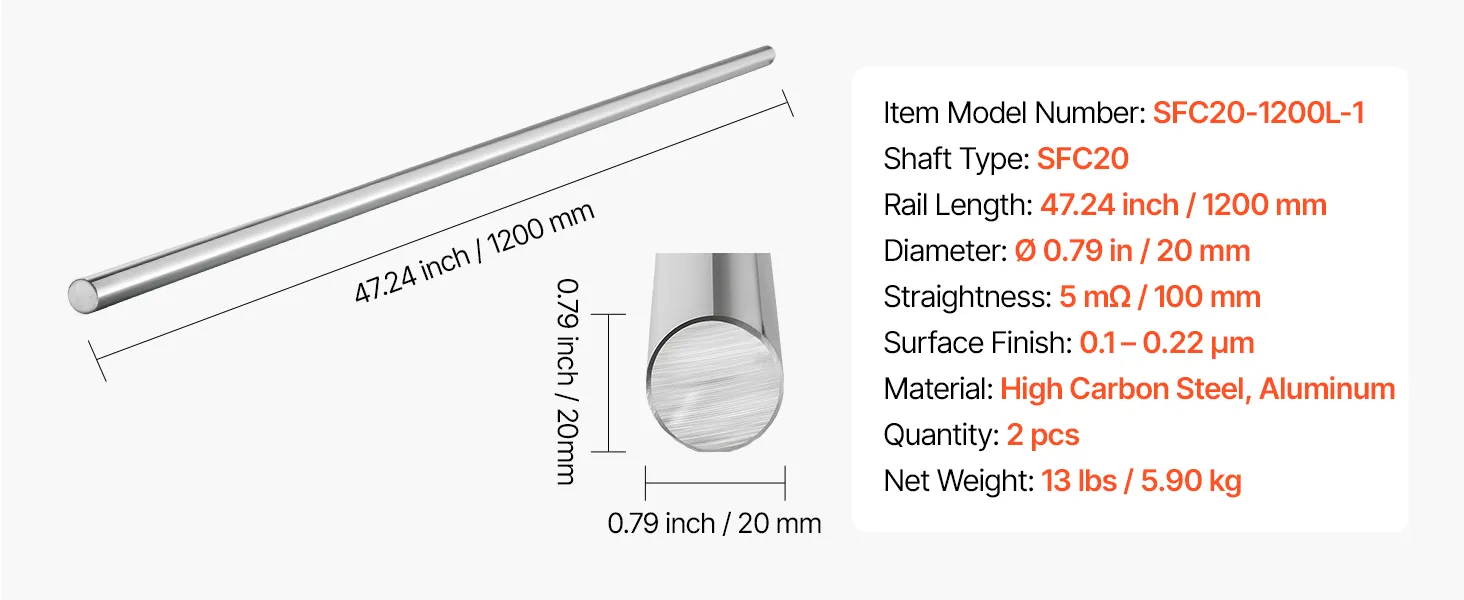 2-Piece Linear Motion Rods: This set includes two 20 mm diameter, 1200 mm long linear rail shafts. The high-compatibility design pairs seamlessly with various linear rails and machinery, ensuring smooth and stable motion for industrial applications