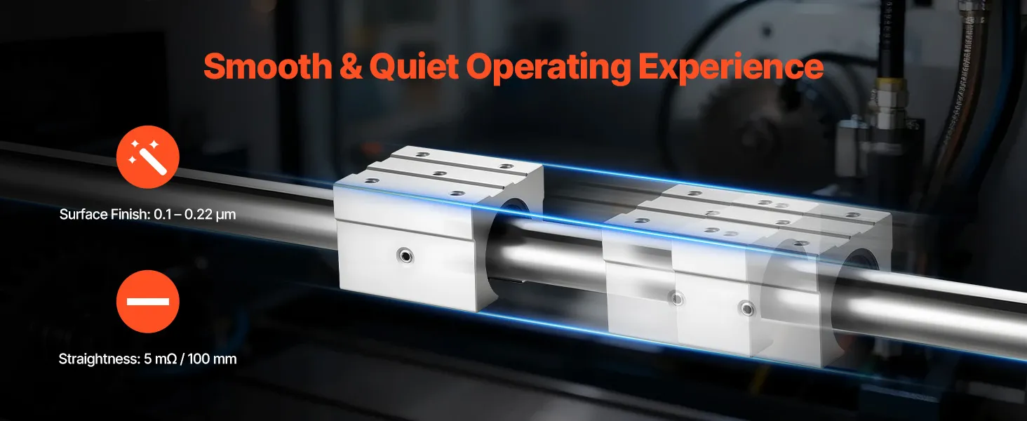 The smooth linear rod shaft surface ensures high-precision straightness and low-friction motion, reducing operational noise and wear while maintaining both precision and longevity.