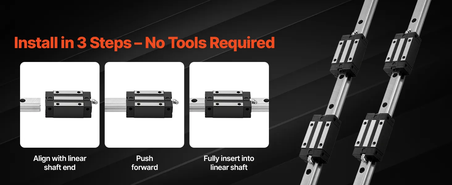Silent & Smooth Sliding: Built-in ball-bearing slide blocks deliver quiet, low-friction motion while gripping the shaft tightly for stable linear travel. Less noise, less wear, more precision—every time you move