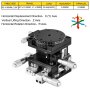 This linear stage has the 90 x 90 mm (3.54 inches) workbench. The direction of movement: X, Y, Z, R axis. Travel: XY:±6.5 mm, Z: 10 mm, R Axis: 360° (±5° fine-tuning). And the accuracy is 0.03 mm.