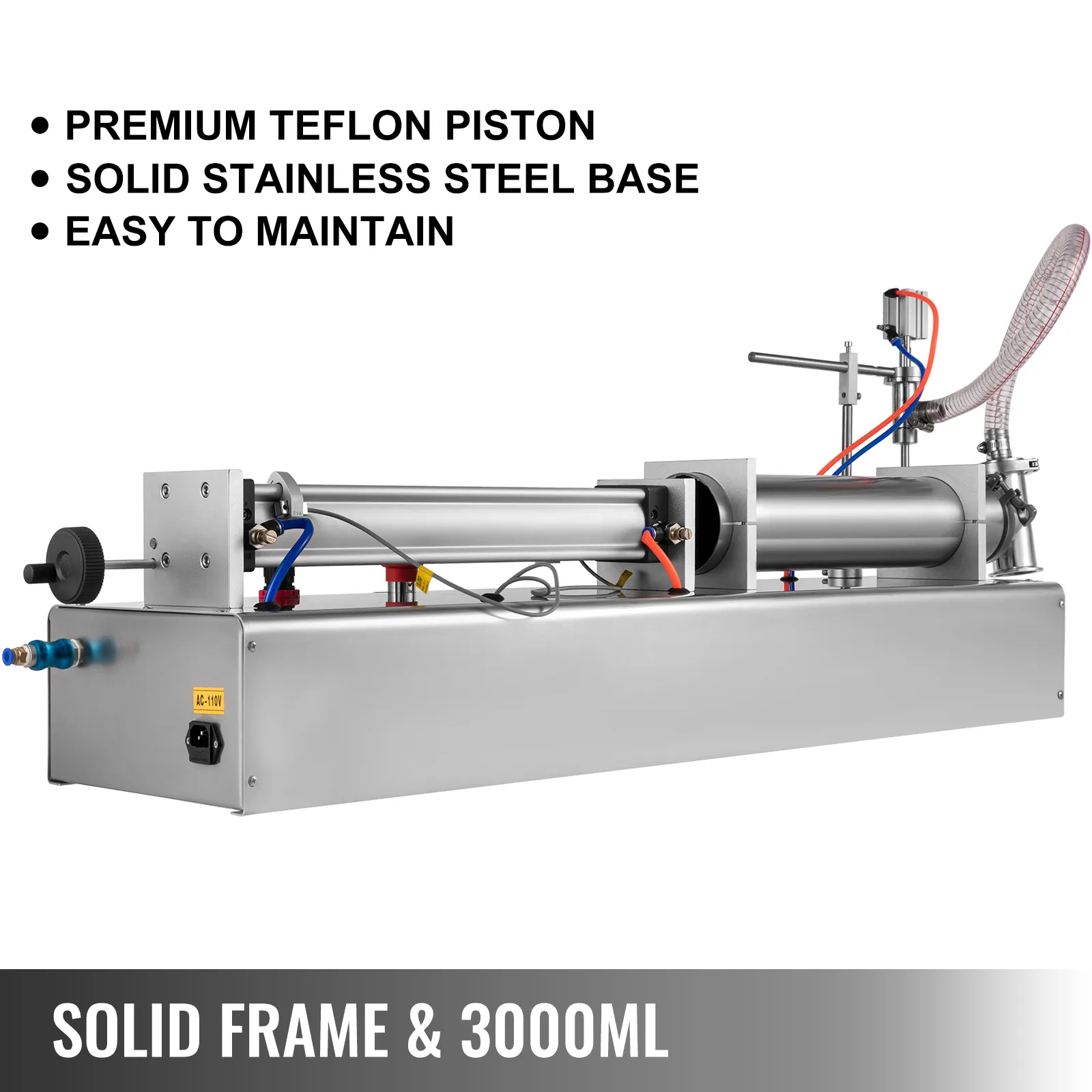 Large Capacity: 500-3000ml. The material of this liquid filler machine is stainless steel. Thickened base and PTFE plunger have a high quality. Removable buckles make the lotion filling machine easy to maintain.
