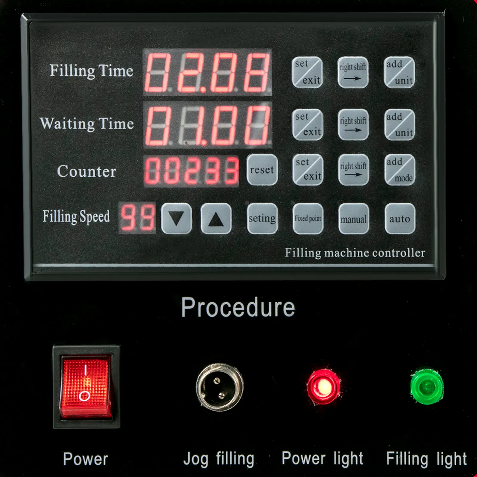 The microcomputer effectively controls the filling process, including filling time and waiting time. It features the automatic counting function. The LCD is easy to operate.