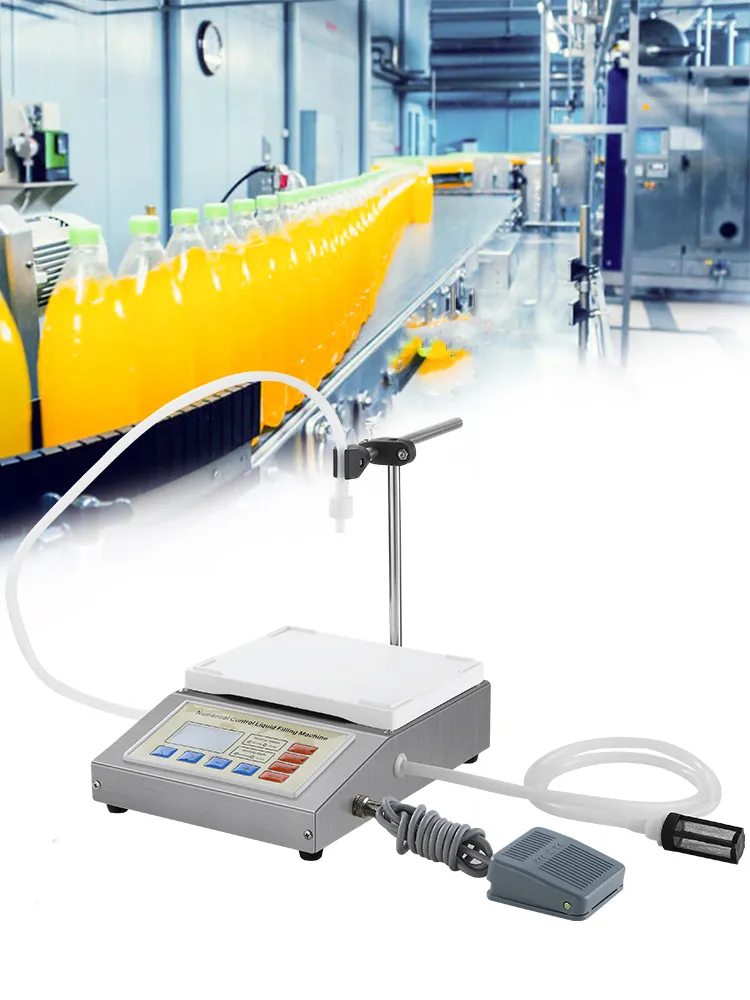 Here are the highlighted design details of our automatic liquid filler: Speed Control Knob ( range from 0-100), Height Adjustment Bracket, and a Filling Filter.