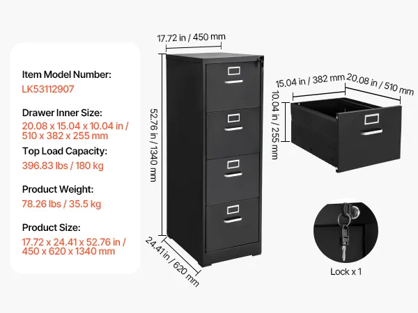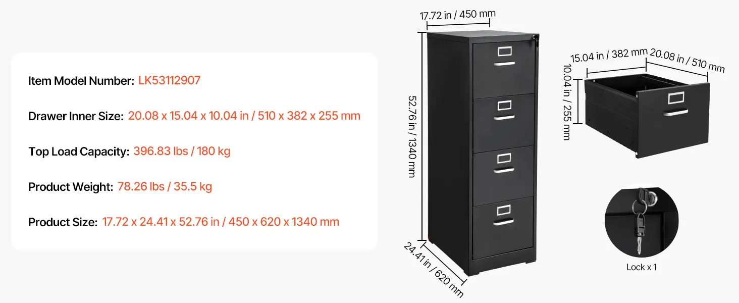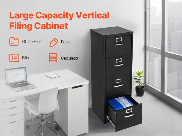 This high-efficiency vertical filing cabinet is crafted from premium materials, ensuring sturdiness, durability, and strong load-bearing capacity. It allows for easy storage of various documents while keeping them secure. It is the ideal choice for your office!