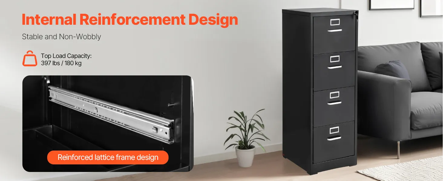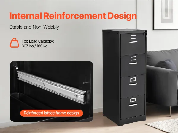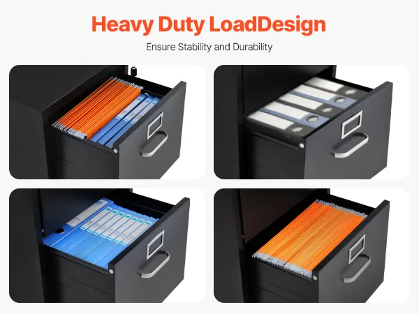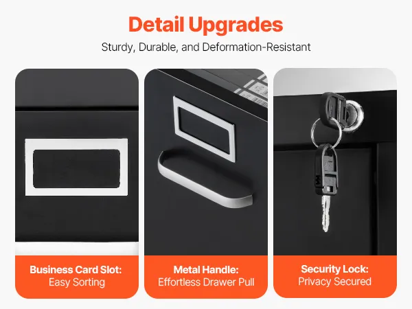 Smooth Drawer Operation: The locking file cabinet features a full-extension track design, allowing the drawers to be pulled out smoothly for easier access. Each pair of tracks is made from high-strength materials, efficiently handling heavy items while ensuring drawer stability and durability.