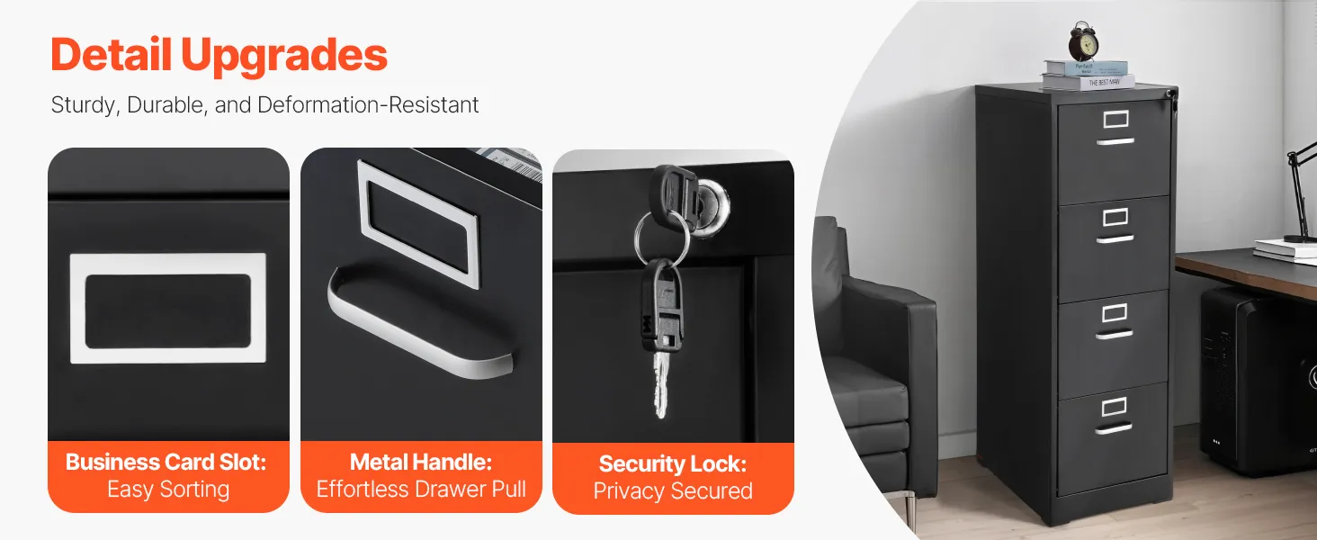 Privacy Locking: This file cabinet has a locking design to keep your private documents and necessary materials secure. Whether contracts, invoices, or personal files, your documents remain secure from unauthorized access.
