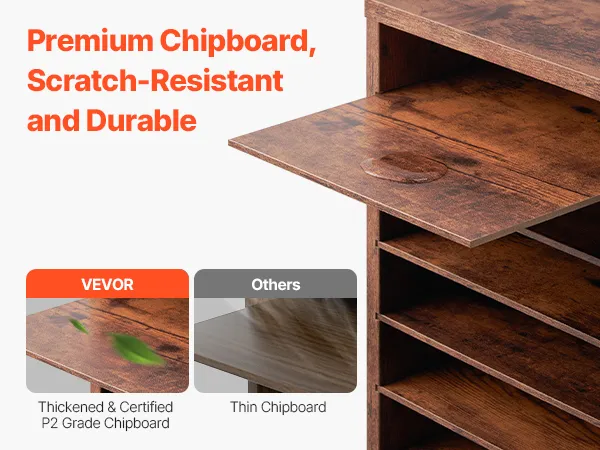 Our wood literature organizer is built from durable P2 particle board and is EPA certified, ensuring it's secure for you and your family to use. The smooth, polished surface is waterproof, scratch-resistant, and easy to clean, making it ideal for busy workplaces.