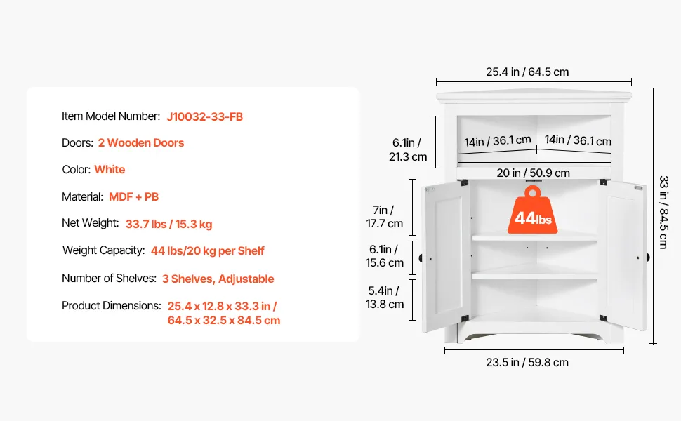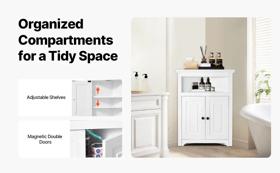 Hassle-Free Setup: All the parts and instructions you need are included, making assembly quick and simple. Grab a friend, and you can have your corner cabinet storage ready in about 60 minutes. Heads up: lighting and screen settings might make the product look slightly different in photos compared to real life. And, for extra peace of mind, we’ve added a corner cabinet with doors for secure storage.