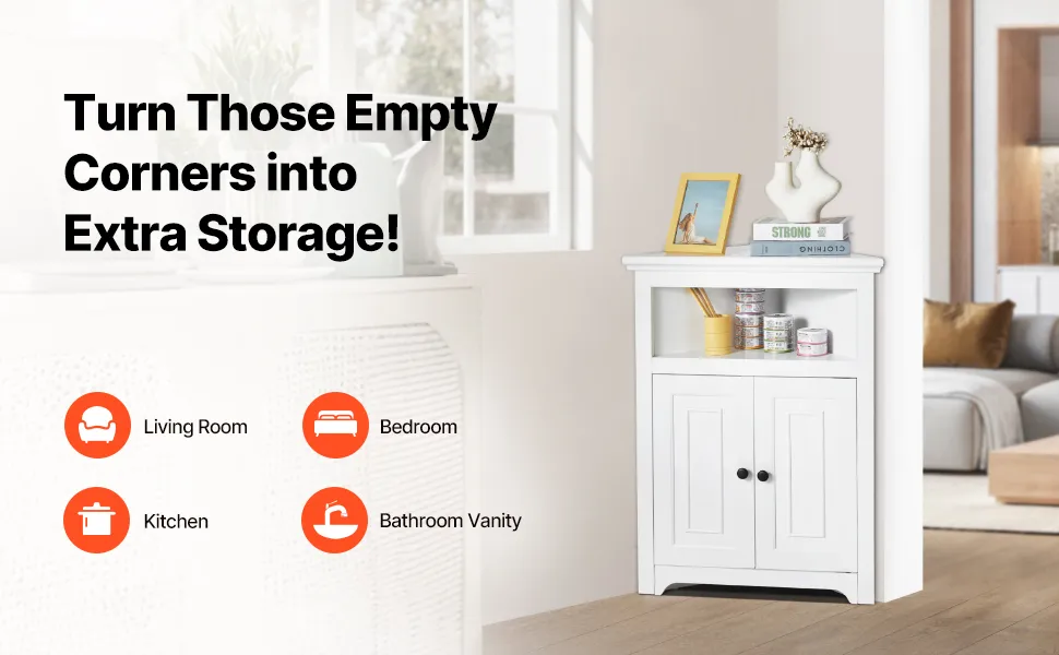 Unlock Your Corner: This corner storage cabinet is designed specifically for those tricky spaces. It fits perfectly in living rooms, dining rooms, bathrooms, or kitchen corners, turning underutilized spots into practical storage. Plus, it adds a touch of charm and life to your home—your corners will thank you!