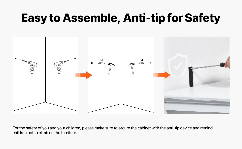 We’ve added a tip-over prevention device—please make sure to install it for added safety and stability. This feature ensures your cabinet stays secure and safe to use, especially in homes with children or pets.
