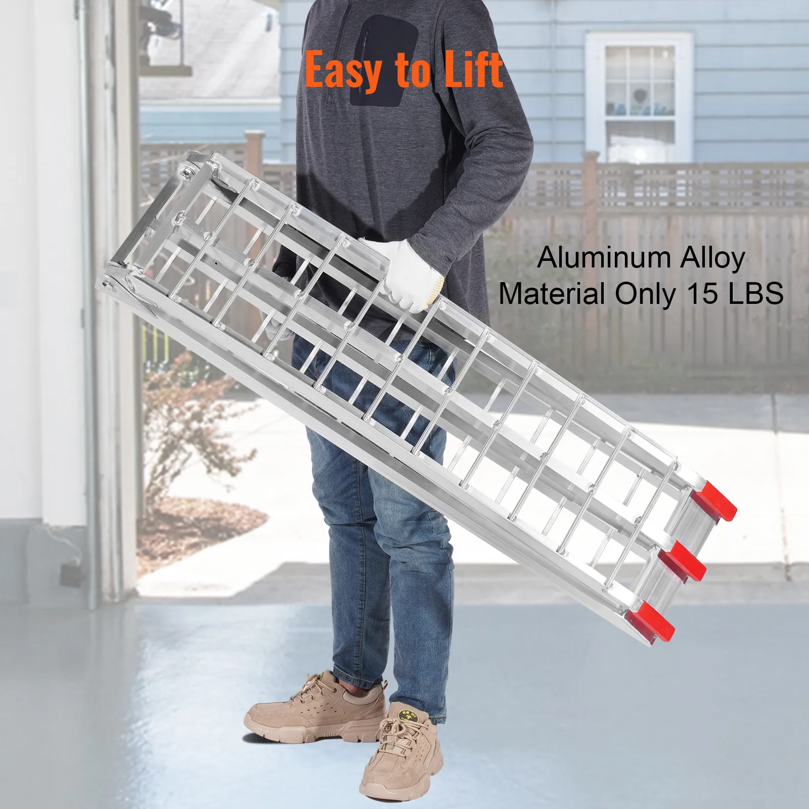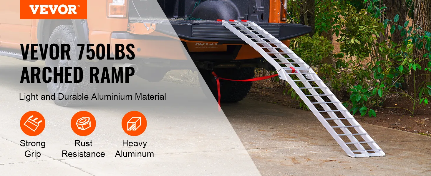 They are lightweight yet sturdy. Made from aluminum alloy, they are easy to handle and secure. Despite their lightweight, these ramps can support up to 750 lbs. This makes them ideal for loading heavy vehicles like motorcycles and lawnmowers. The ramp is easy to attach to your vehicle. It provides a secure loading platform. The foldable design allows you to store and transport them easily. You can handle them without needing extra help when loading and unloading. The secure attachment ensures stability during use.