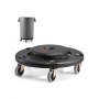 Compatible with 20/32/44/55-gallon bins, this trash can dolly simplifies waste transport while reducing physical strain. Its twist-lock system securely fastens bins with a clockwise rotation, ensuring stability. Five 3" swivel casters enable quiet, scratch-free maneuvering across floors.