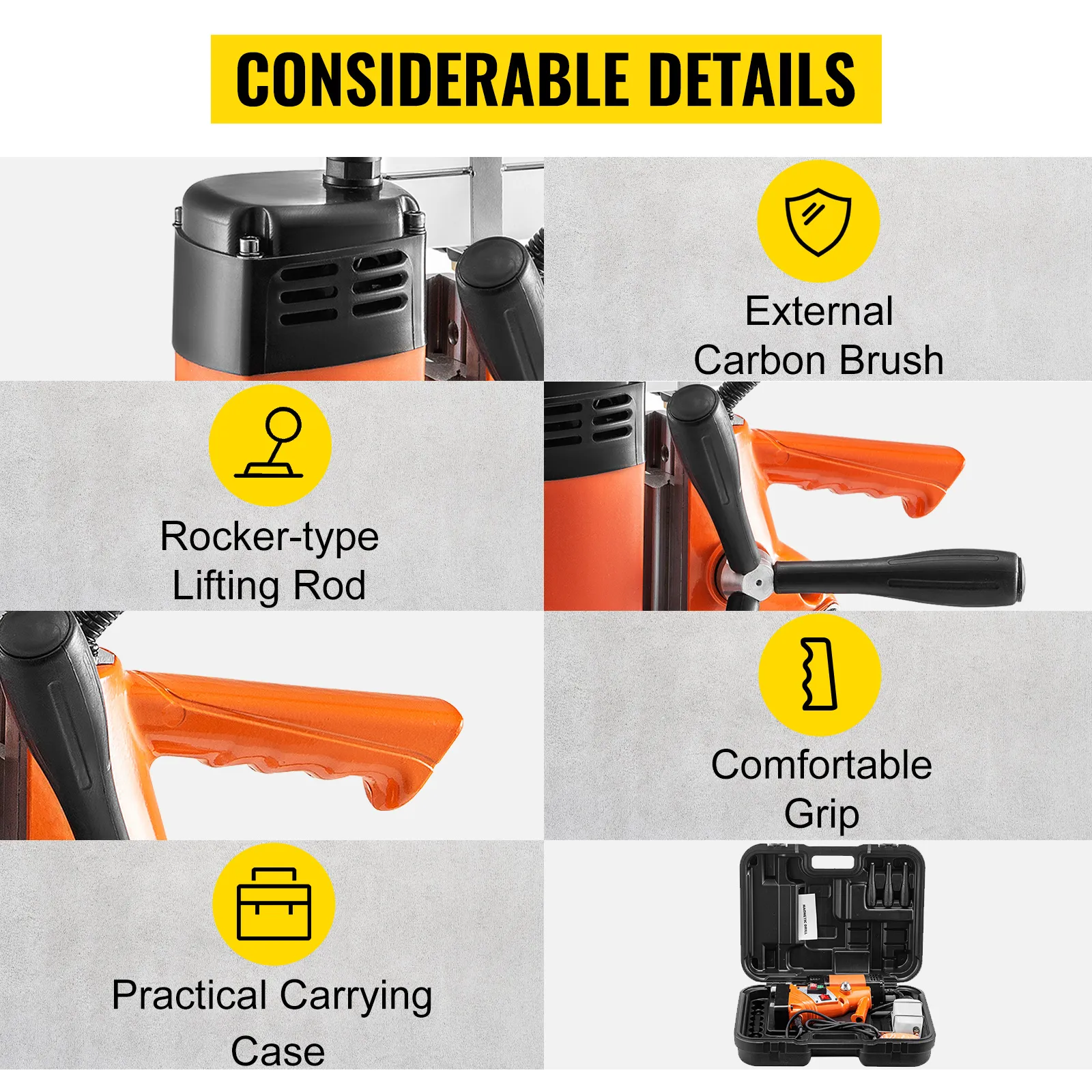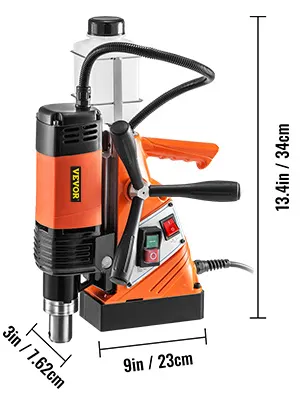 Thoughtful Designs & Cooling System: This ergonomic handle provides comfortable grip in operation and transport. These 3 extended crank handles are coated with nonslip rubber for laborsaving operation. Coolant tank and exhaust air holes are designed for effectively cooling the magnetic drill press.