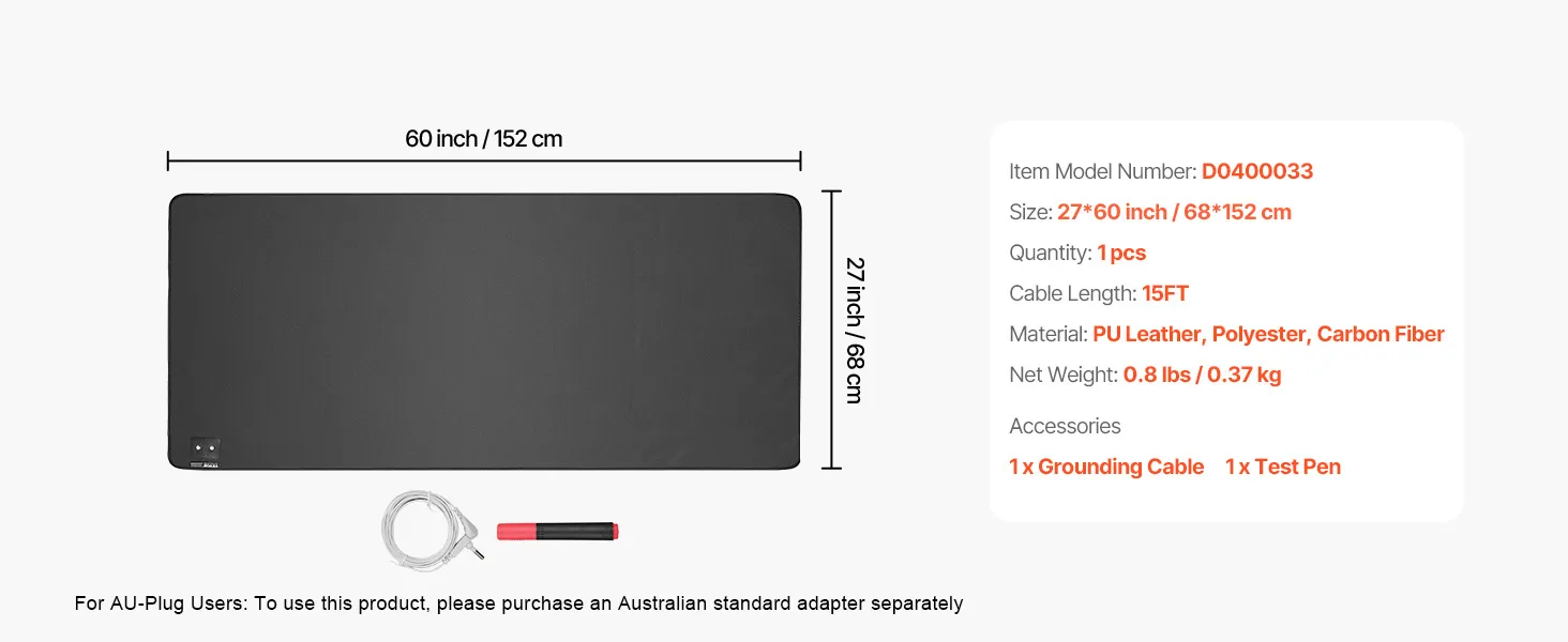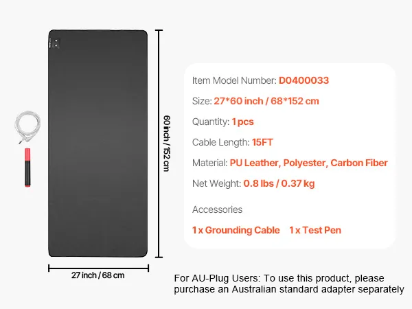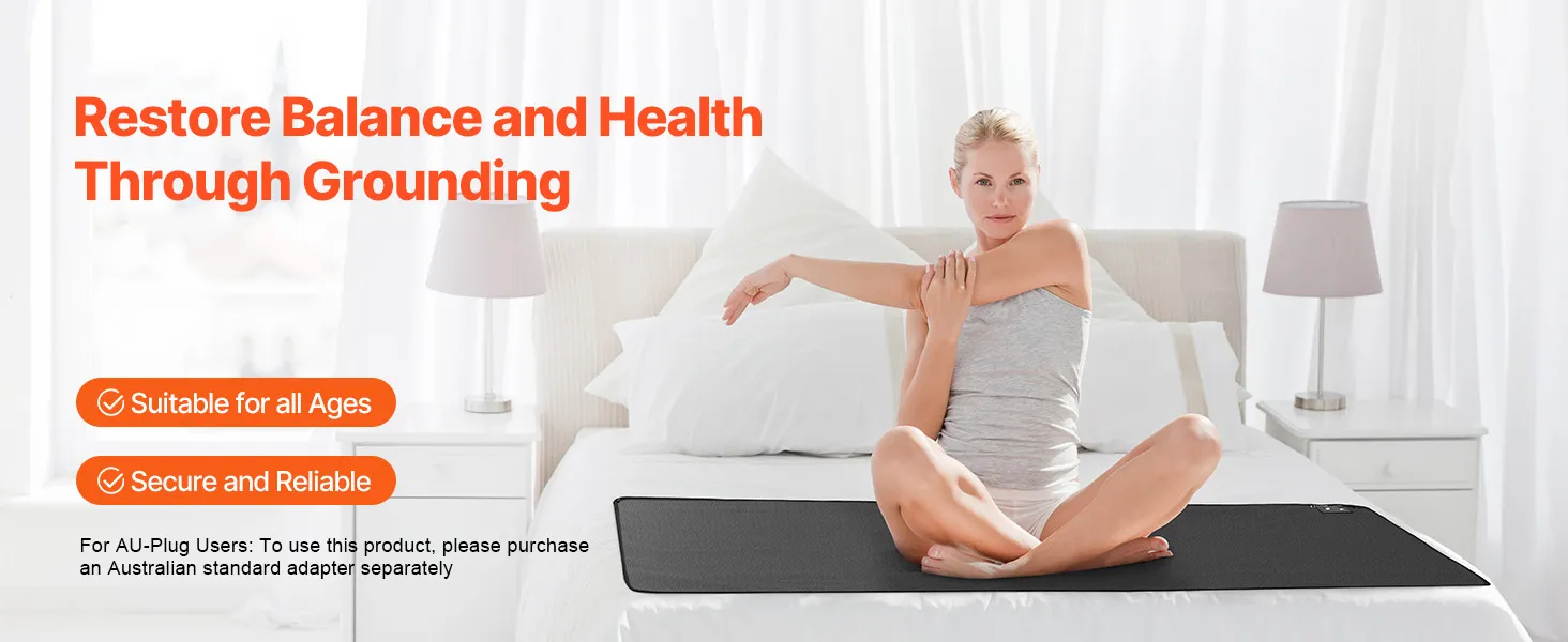 Connect with Earth's Energy: Our grounding mat connects your body to the Earth’s natural energy by channeling negative charges through a grounding outlet. This connection can help improve sleep, reduce pain, and enhance overall health. (For AU-Plug Users: To use this product, please purchase an Australian standard adapter separately)