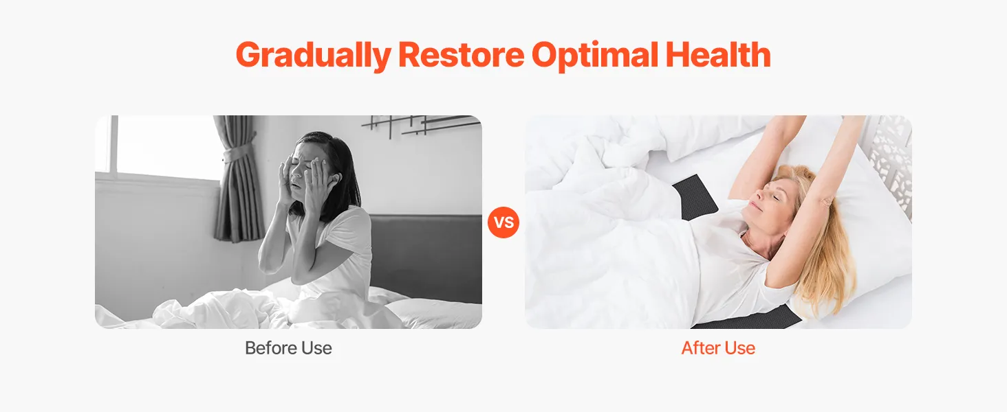 With the grounding pad, you will experience reduced pain, improved sleep quality, and reduced stress. It helps restore energy and relieve muscle tension and headaches while promoting inner calm and overall relaxation.