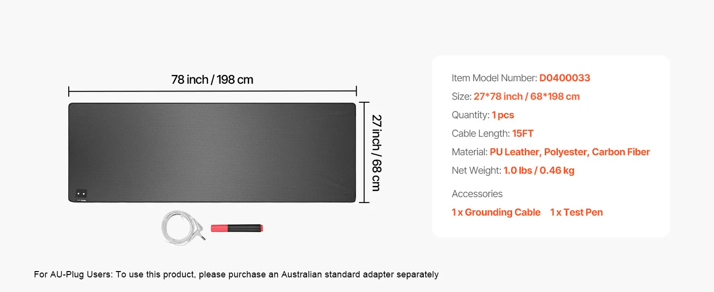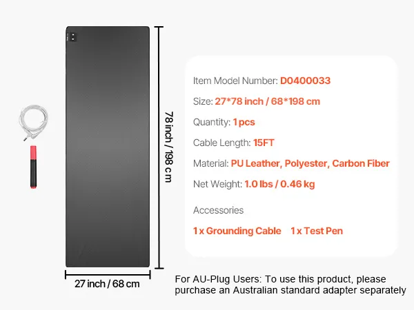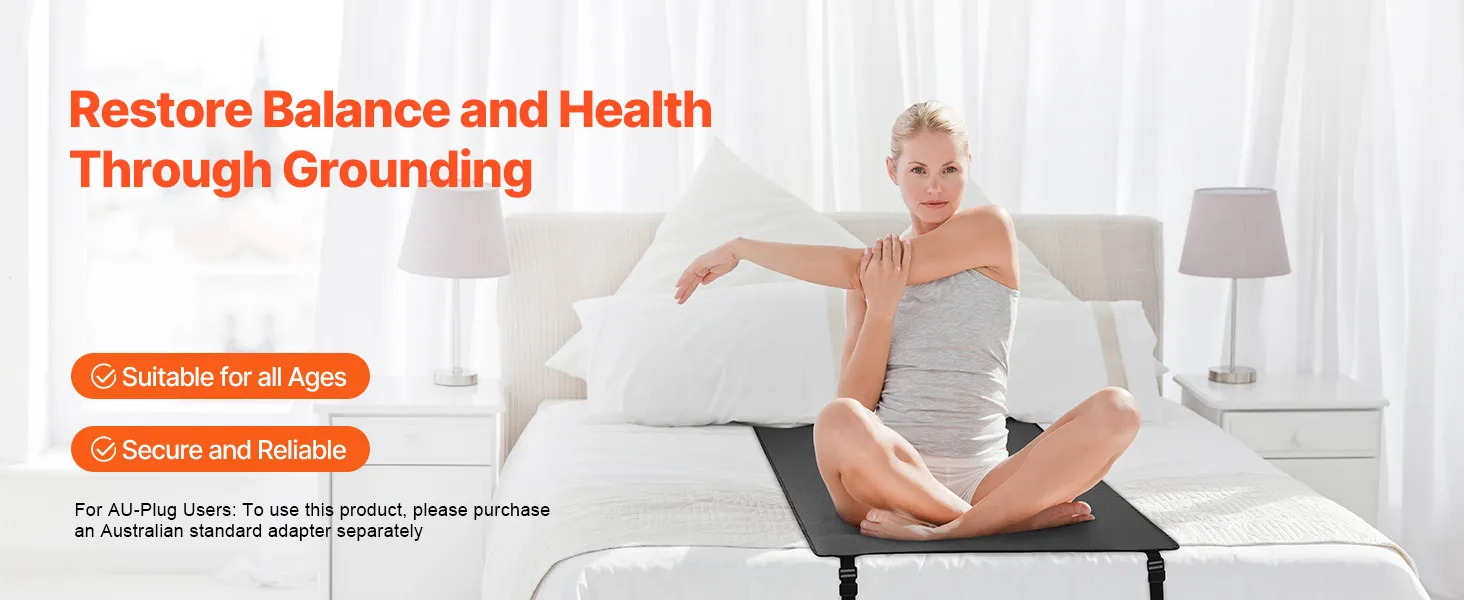 Connect with Earth's Energy: Our grounding mat connects your body to the Earth’s natural energy by channeling negative charges through a grounding outlet. This connection can help improve sleep, reduce pain, and enhance overall health. (NOTE: To use this product, you need to purchase an Australian standard adapter separately. Please plug the other end of the cord into the adapter first, and then into the wall outlet.)