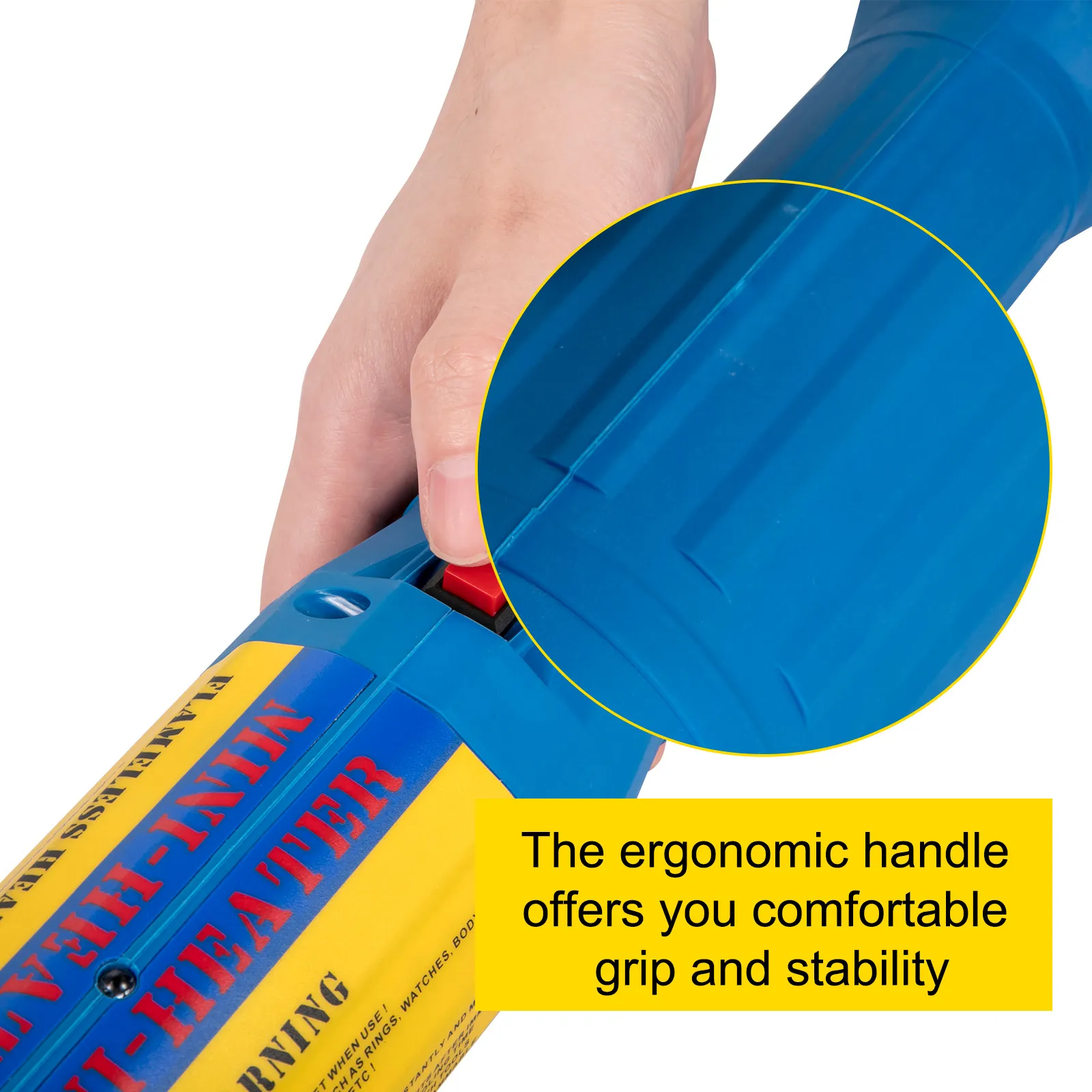 • Ergonomic Handle: It is hand-held. The large slip-resistant handle provides you a comfortable grip when using the electromagnetic induction heater, and it ensures stability.