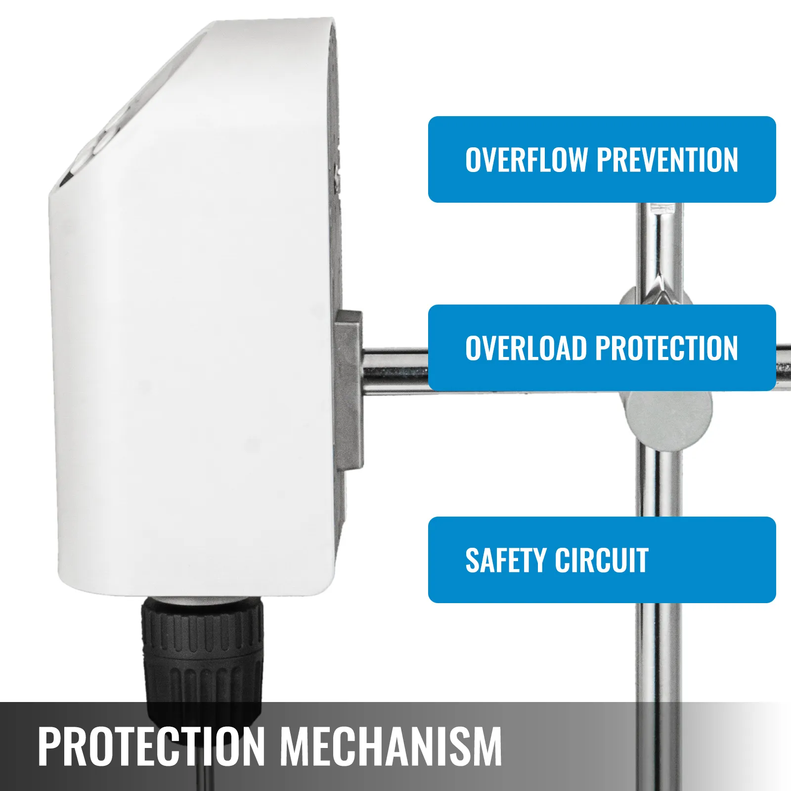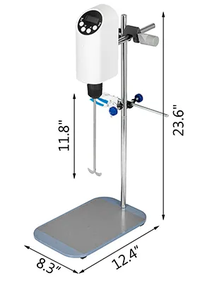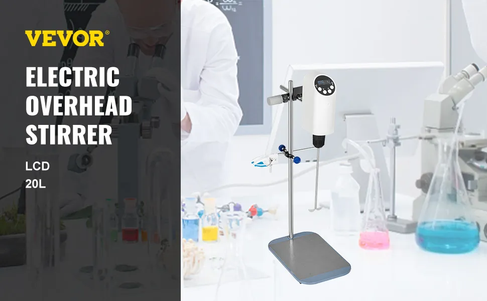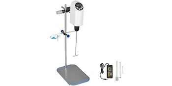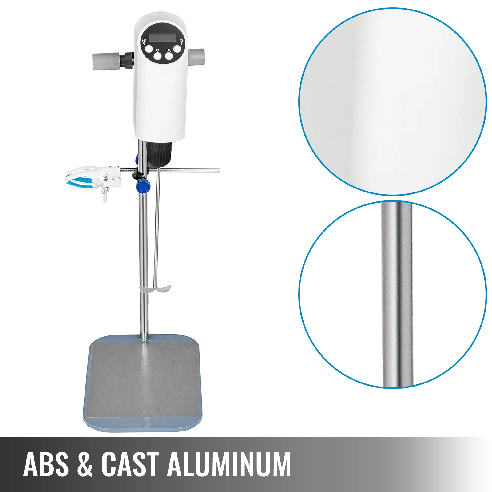 This electric overhead mixer is built with ABS plastic and cast aluminum, competent for high-load and long-term continuous work. With the powerful motor and the stirring speed range of 200-3000 rpm, the lab vortex mixer can stir up to 20L. This liquid mixer is started smoothly to prevent the sample from overflowing, and will automatically stop in case of overload or an abnormal condition.