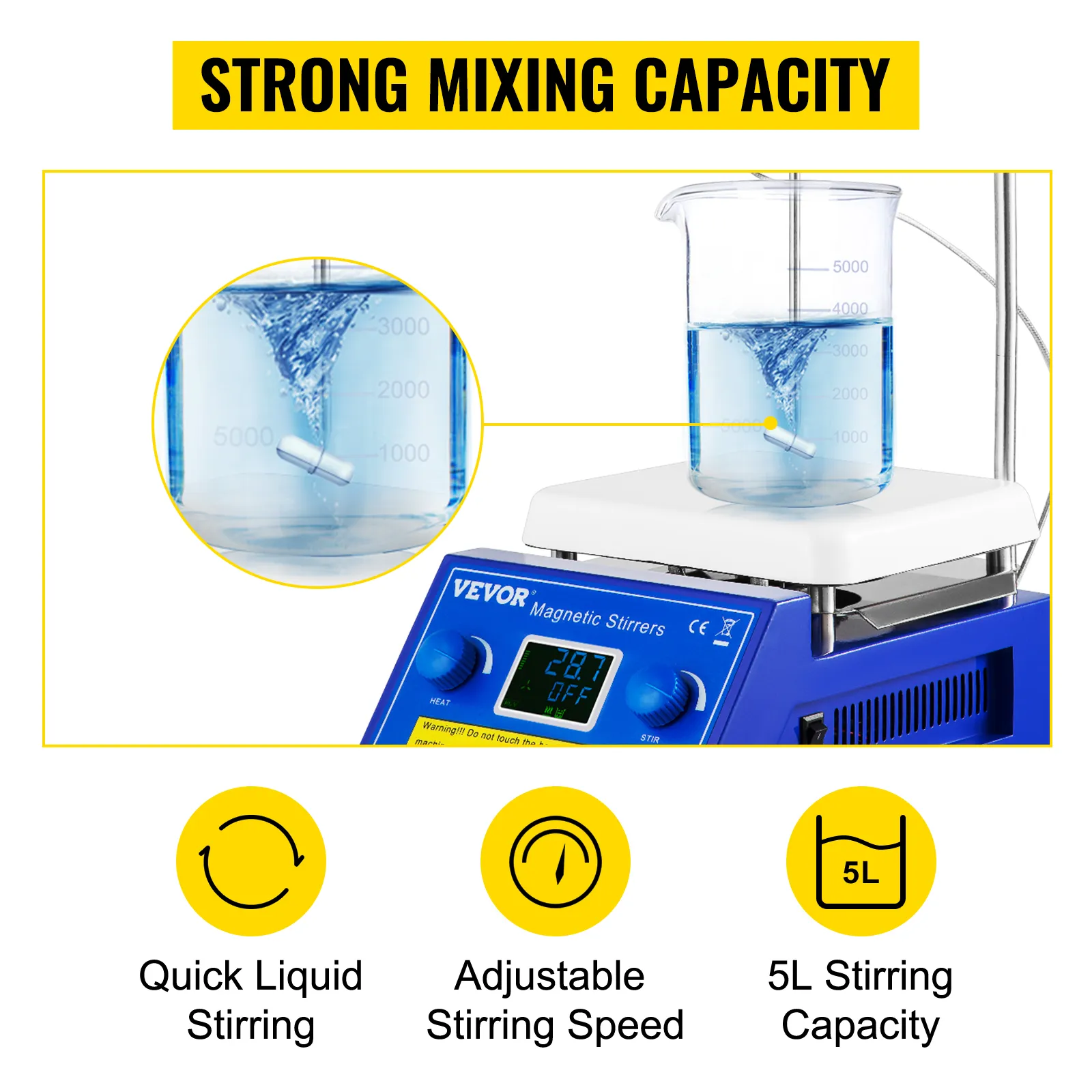 Fast Heating Up & Large Liquid Stirring Volume & Easy Adjusting