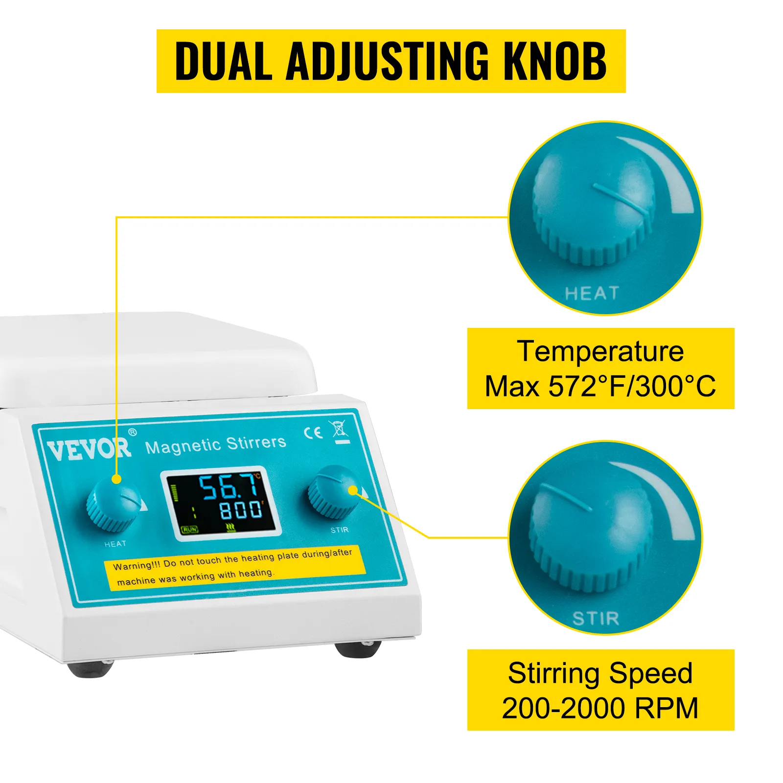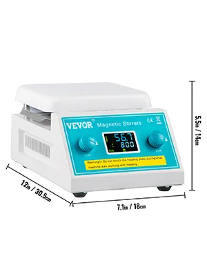 This lab hot plate magnetic stirrer incorporates an electric heating plate for more efficient stirring. Ceramic-coated heating plate heats samples quickly and uniformly. The stirring speed can be adjusted to 2000 RPM for more efficient stirring. LED digital display and dual control knob give precise temperature and speed control. This scientific hot plate magnetic stirrer is ideal for scientific research, laboratory study, college experiment, and industrial research.