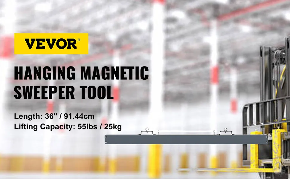 VEVOR's hanging magnetic sweeper is made to avoid tire damage and save on costly repairs. It picks up metal debris like nails and screws that can cause flat tires, which is especially useful for businesses with industrial parking lots. Attach it to a forklift or tractor to cover large areas quickly. The sweeper helps keep your workspace free of dangerous metal objects. This reduces downtime caused by flat tires and increases productivity. You won't have to pay more money in the long run. A cleaner lot means fewer tire issues and fewer maintenance costs. This practical tool helps you avoid unexpected tire repairs!