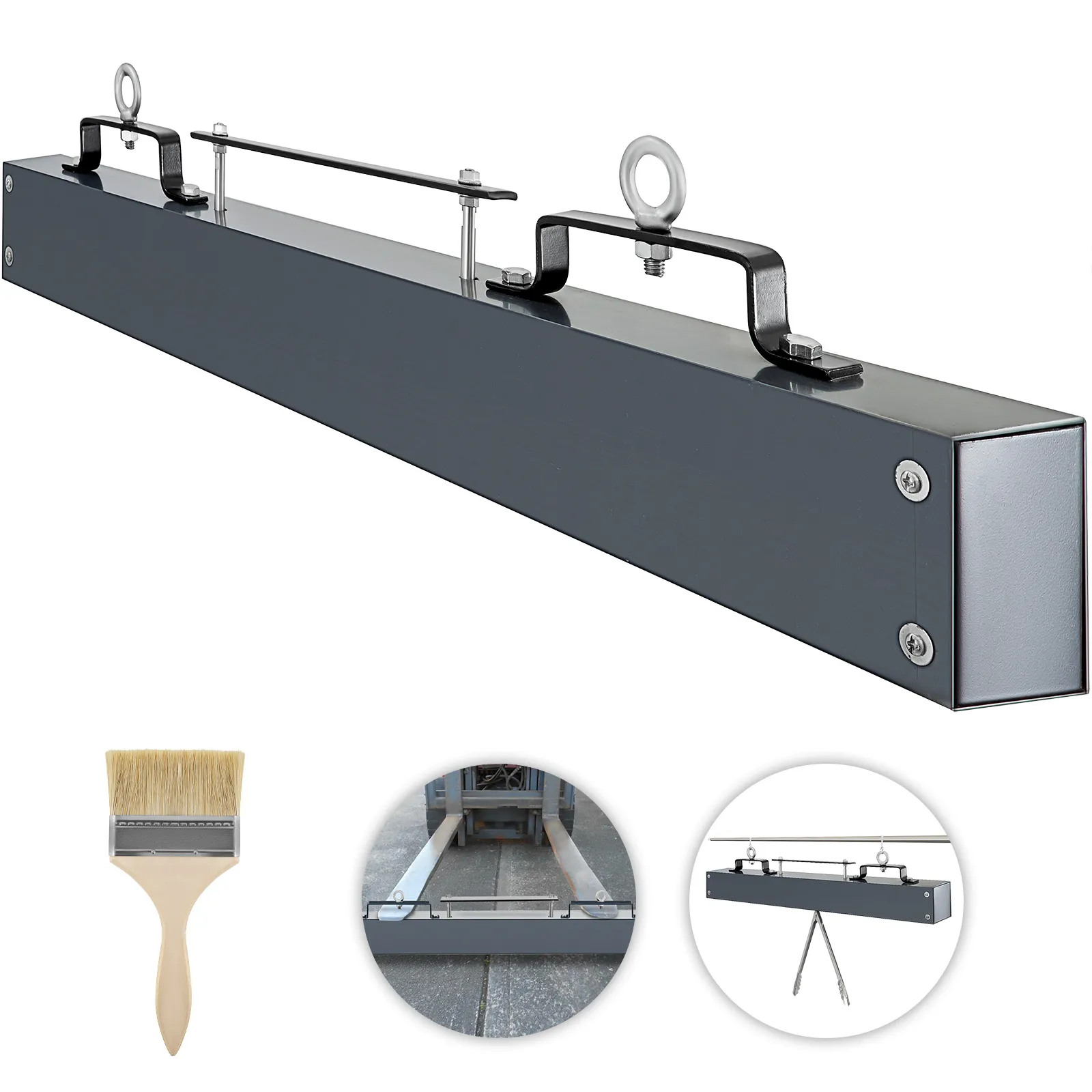 It is time to get the hanging magnetic sweeper ready to use out of the box. This means you can start cleaning up metal debris right away. Installation is easy with included eye bolts. Attach it to a forklift, tractor, or even a structure with designated attachment points. The quick-release handle makes disposal of debris quick and straightforward, ensuring you spend less time managing the tool and more time cleaning. Easy usage makes it practical for daily operation. Even if you're not mechanically inclined, setting it up is hassle-free. Enjoy the immediate benefits of a hygienic work environment without a complicated setup.