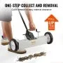 This VEVOR rolling magnetic sweeper is a must-have for any household or job site. It has an incredibly powerful 45 lbs magnetic force, which ensures it picks up even the smallest metal debris. Whether you're dealing with nails, screws, or staples, this sweeper can handle it all. The sweeper features easy and quick cleanup, making it an essential tool for maintaining a hygienic and safe environment. The large coverage area of the sweeper enhances its efficiency, resulting in faster and more effective cleanup tasks.