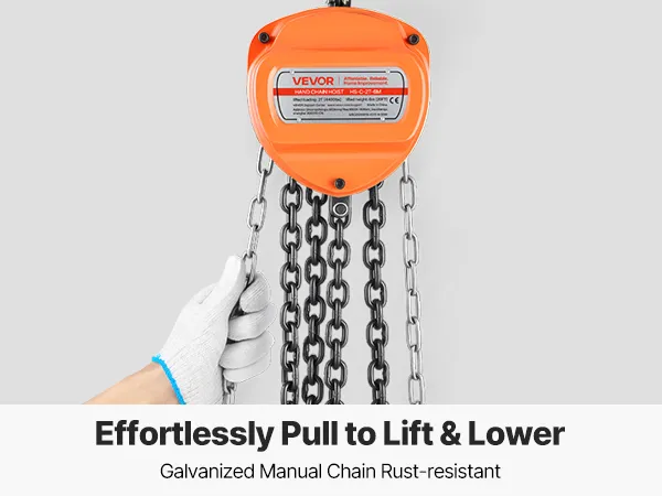 Effortless Operation: Compact and user-friendly, this manual chain block hoist only requires 340N of pull force when fully loaded. The deep groove design keeps the chain secure, saving time on repairs and making lifting easy