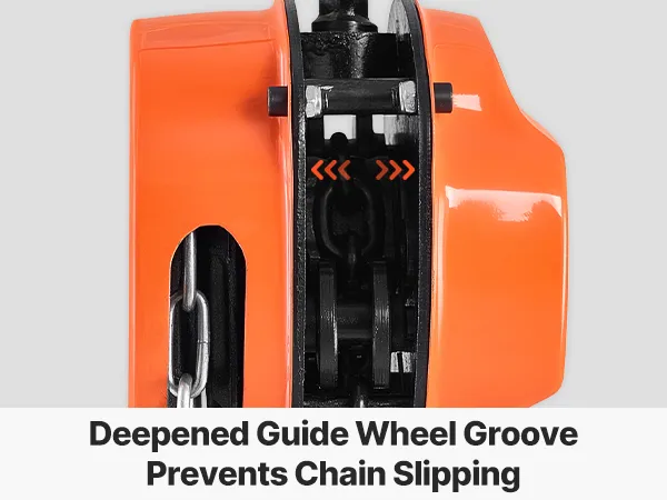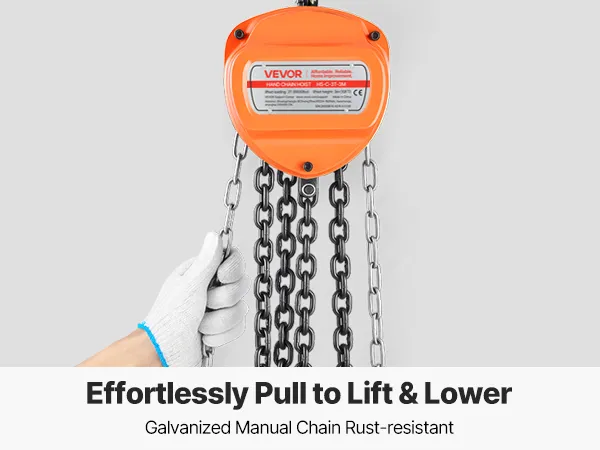 Effortless Operation: Compact and user-friendly, this manual chain block hoist only requires 390N of pull force when fully loaded. The deep groove design keeps the chain secure, saving time on repairs and making lifting easy