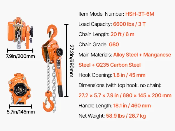 This manual lever hoist handle galvanized G80 chain handle tough jobs like moving logs, machinery, or steel beams. Weston-style dual pawl brakes and a guided chain slot ensure smooth, secure operation.