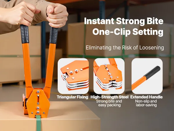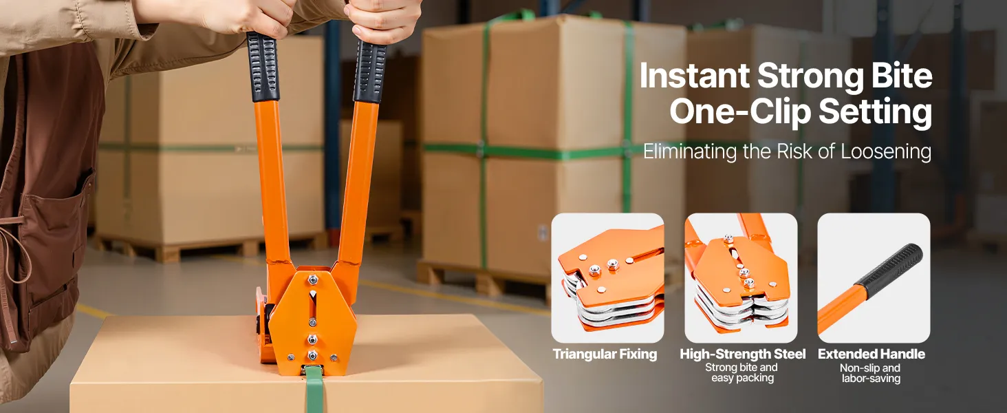 Crafted from upgraded hardened steel, the banding strapping kit features an extra-long handle designed for labor-saving lever operation to enhance strapping force. The sealer has strong gripping power, speeds up packaging and securing efficiency, and allows flexible, controllable operation.