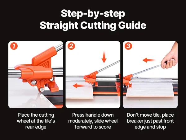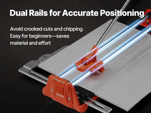 Sharp Cutting: The tile cutter is built for durability. The tough cutting wheel scores and breaks tiles effortlessly. Steel rails and a heavy-duty aluminum base, ensuring reliable performance for your tile laying and home renovation projects