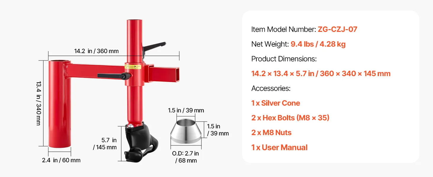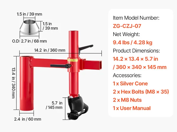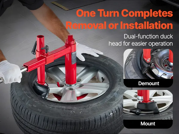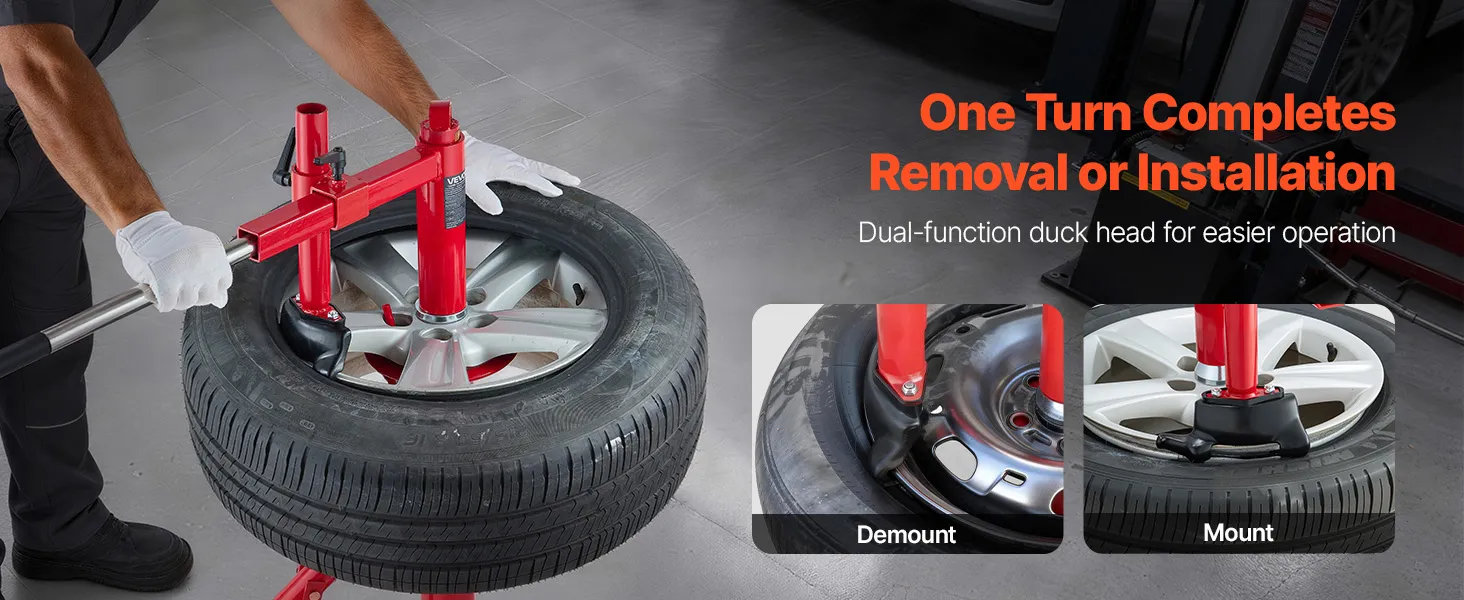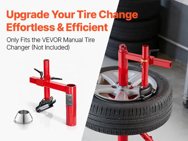 This manual tire changer duck head kit is compatible exclusively with the VEVOR manual tire changer (not included). Enhance your tire servicing operation with our set, including duck heads, mounting tubes, steel silver cones, and related accessories. It easily installs on a tire changer base.