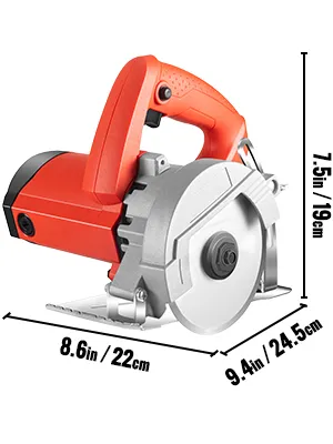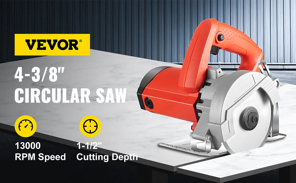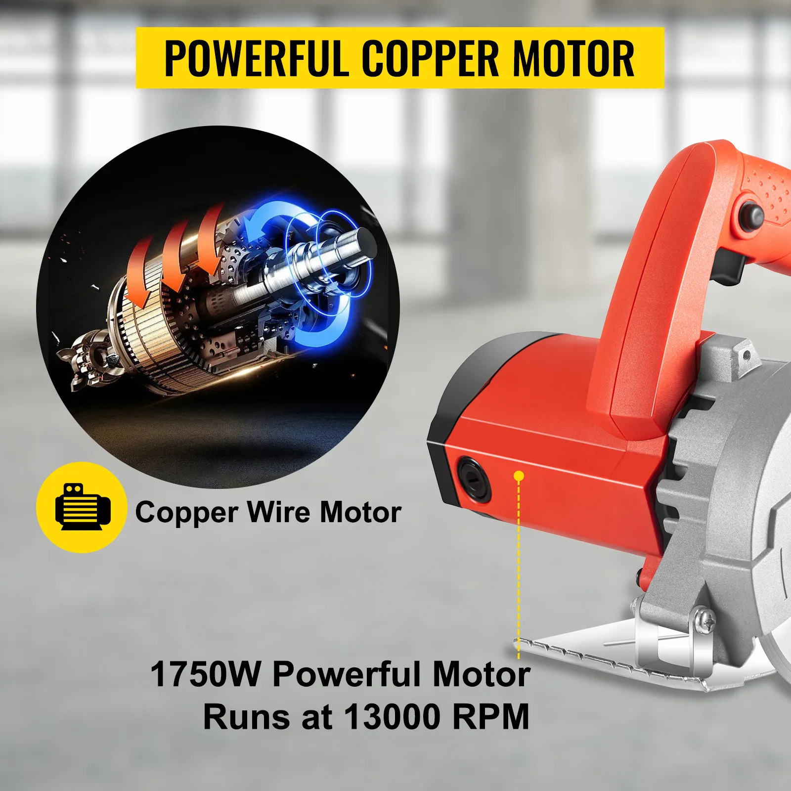 A 1750W superior motor drive 13000rpm speed delivers the power to cut through granite, brick, porcelain, reinforced concrete, metal, and other materials with ease. The double protection switch and cover promise a secure cutting job. A lightweight frame saves your energy. Adjustable depth design provide you with a productive work experience.