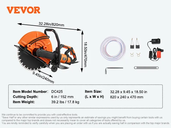Cut through Anything: Our concrete cutter saw has a cutting depth of 6 inches, making it suitable for cutting through various concrete materials such as stones, reinforced concrete, pavings, and bricks.
