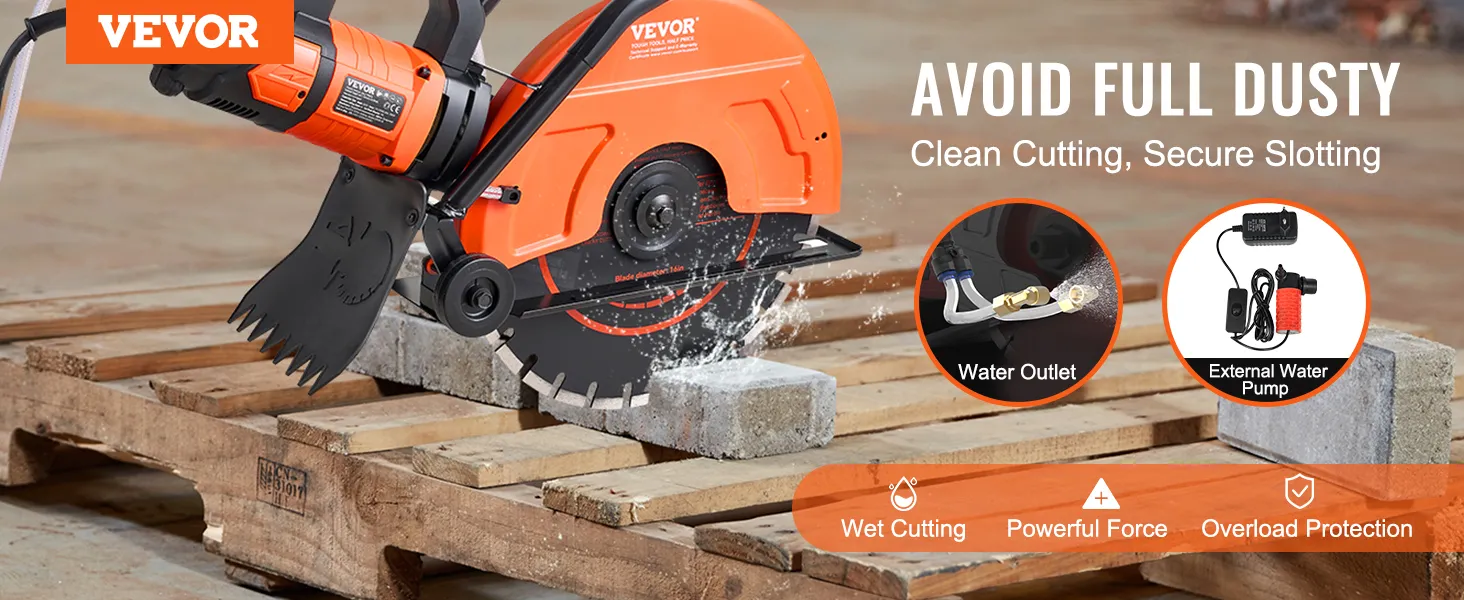 Are you concerned about debris splashing during cutting, which can harm your vision? The VEVOR electric concrete saw with wet-cutting attachments offers more precise cutting and prevents debris from flying. It also features a double switch design and overload protection for safer operation.