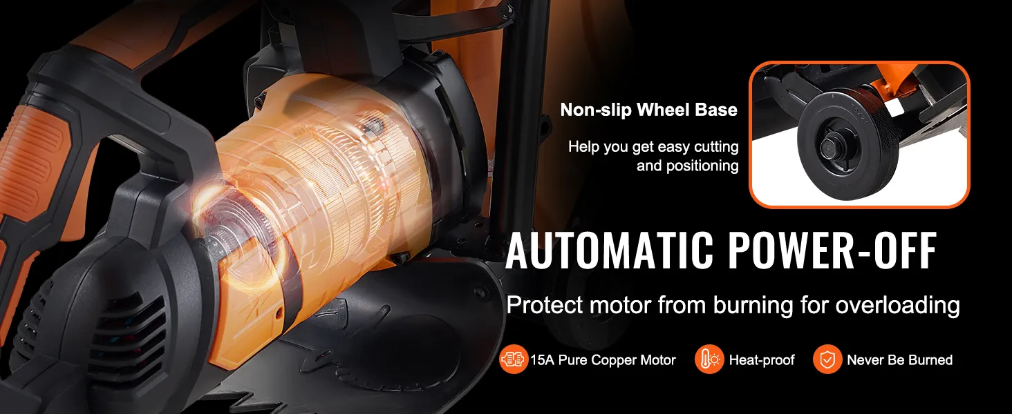 Our electric cement saw has a safety feature that prevents the motor from overheated due to excessive power. The pure copper motor can withstand high temperatures, ensuring a longer service life.