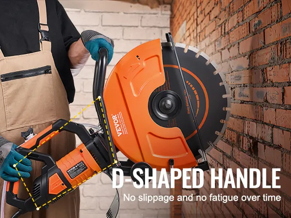 The concrete cutting saw has a scientifically optimized weight distribution thanks to its handle. The handle also features a non-slip surface, preventing it from easily slipping and causing fatigue during extended use.