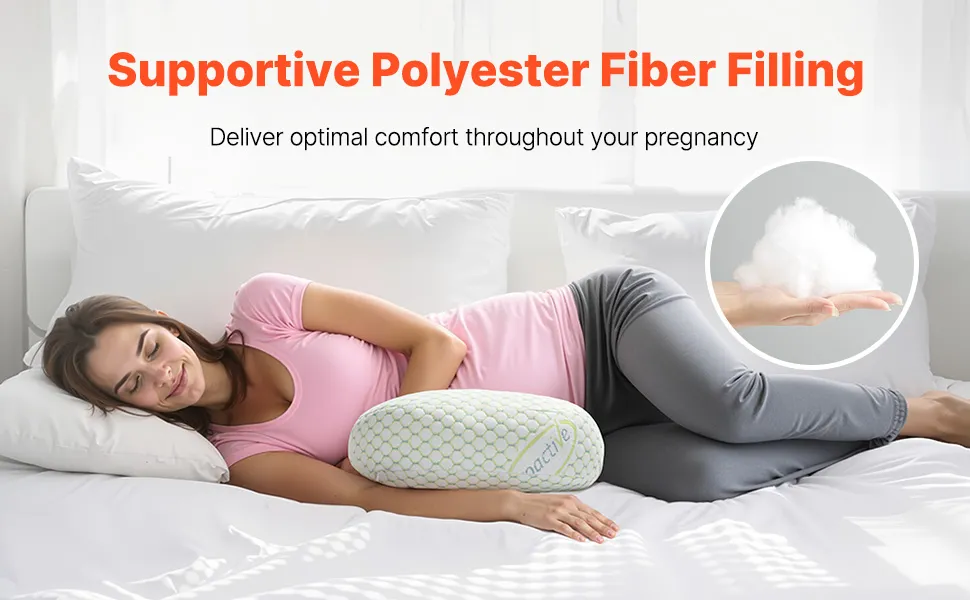 Our maternity pillow is filled with high-quality polyester fiber, providing the perfect balance of support and comfort for your body. Designed to alleviate pressure and enhance relaxation, it helps you unwind and enjoy a more restful experience.